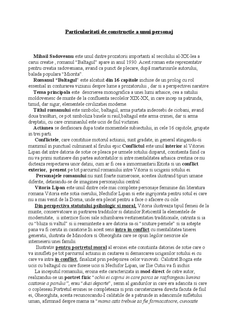 Enigma otiliei are ca temă principală viaţa burgheziei bucureştene de la începutul secolului al xx lea. Romanul baltagul creație de maturitate a lui mihail sadoveanu reprezintă una dintre capodoperele marelui scriitor alături de hanu ancuței zodia cancerului creanga de aur și frații jderi. Ultima noapte particularităţile de construcţie a unui personaj dintr un roman al experienţei. Varianta 04 particularitatile de constructie a unui personaj dintr un basm cult.