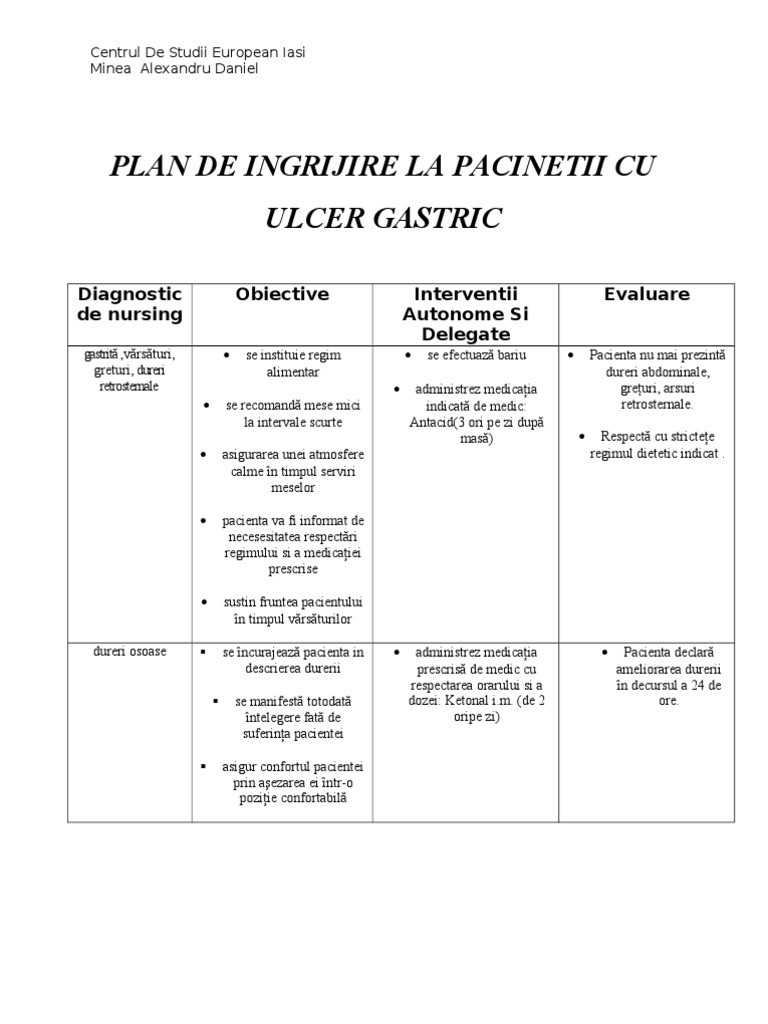 Doc Plan De Ingrijir Ulcer Duodenal Cronic Robert Ciutureanu Academia Edu