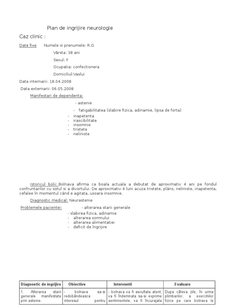 Pe masura ce asistenta medicala dobandeste experienta este de dorit sa si formeze propriul tip de interviu. Deficit de cunoştinţe lipsa cunoştinţelor privind boala de care suferă tratament complicaţii recuperare mod de viaţă şi trai igienic. Enregistrer enregistrer plan de ingrijire psihiatrie pour plus tard. Fiecare dintre acestea are doar o valoare orientativa.