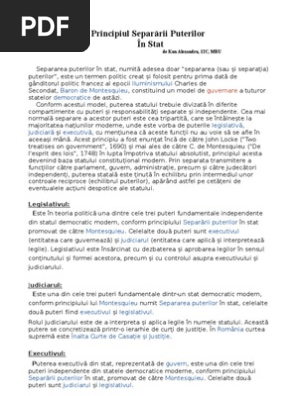 Principiul Separatiei Puterilor In Stat