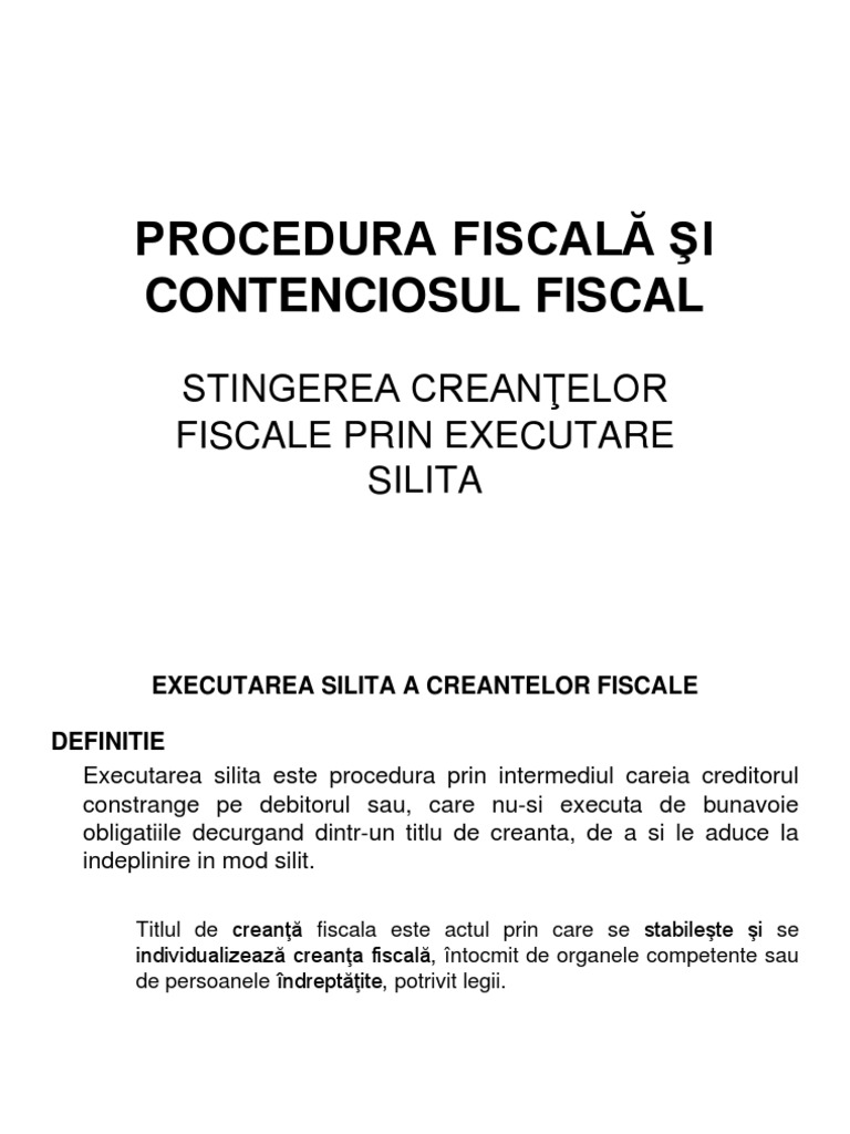 Obiectul contestaţiei 1 împotriva executării silite a încheierilor date de executorul judecătoresc precum şi împotriva oricărui act de executare se poate face contestaţie de către cei interesaţi sau vătămaţi prin executare. Bunurile mobile sau imobile se afla in procedura de executare silita ca urmare a neexecutarii de bunavoie a obligatiilor asumate de catre debitori fata de creditori. Procedura de executare silită a creanțelor fiscale definiție executarea silită prin poprire. Sau b respingerea solicitării de deschidere a procedurii de executare pentru motivele expres arătate în cuprinsul încheierii.