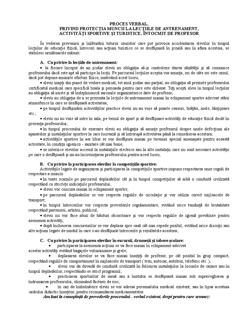Proces verbal de instruire a elevilor la inceput de an scolar. Art 5 ìqshulrdgdgh gh loh suhhglqwhohlqwhulpduduhreoljd. Model proces verbal necesar la organizarea oricareiexcursie. Norme cu caracter general norme şi reguli de circulaţie pentru pietoni norme de protecţie şi.