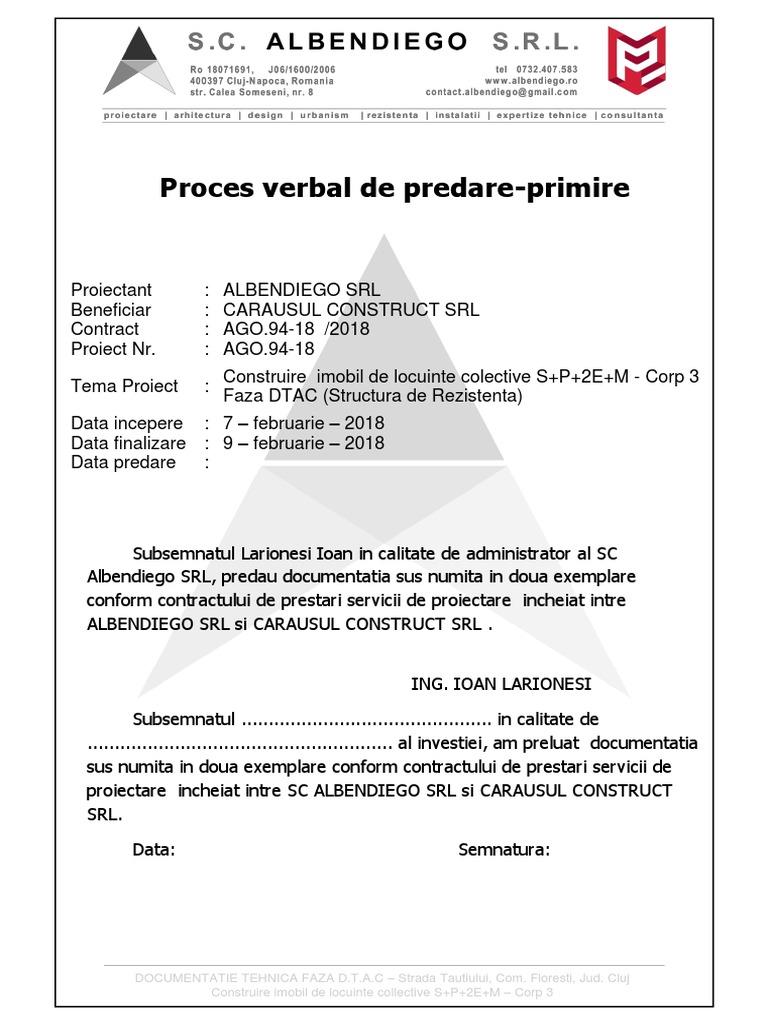 Descarcati gratuit cea mai buna varianta de statute procuri contracte imputerniciri cereri decizii autorizatii coduri legi ordonante 2015. Download model de proces verbal de predare primire download formular model de proces verbal de predare primire in format pdf word doc. Proces verbal de predare primire author. Proces verbal de predare primire author.