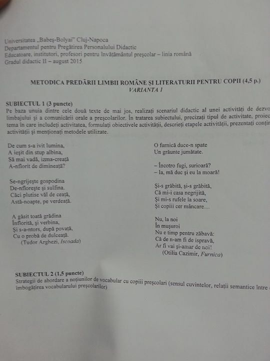Aveți mai jos subiectele date și baremele de corectare de la examenul de definitivat 2018. Metodica predării limbii și literaturii române 15 puncte competența specifică. Tot ce trebuie sa stii despre aceste examene. Cursuri şcoala online cursuri online primar cursuri online gimnaziu cursuri online liceu profesorul la clasă ghid practic de pedagogie resurse educaţionale interactive revista cadrelor didactice evenimente diplome pentru evenimente.