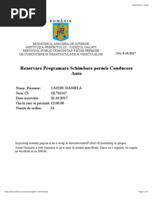 Cum se face programare pentru schimbare permis în 2020 cei care doresc schimbarea permisului auto pot face programare online și evită astfel statul la cozi. Programare online evidența persoanelor galaţi. în fiecare zi de miercuri de la orele. în cazul tipăririi cererilor de pe site acestea trebuie să fie în format a4 iar cele două pagini trebuie să se regăsească pe aceeași foaie față și verso.
