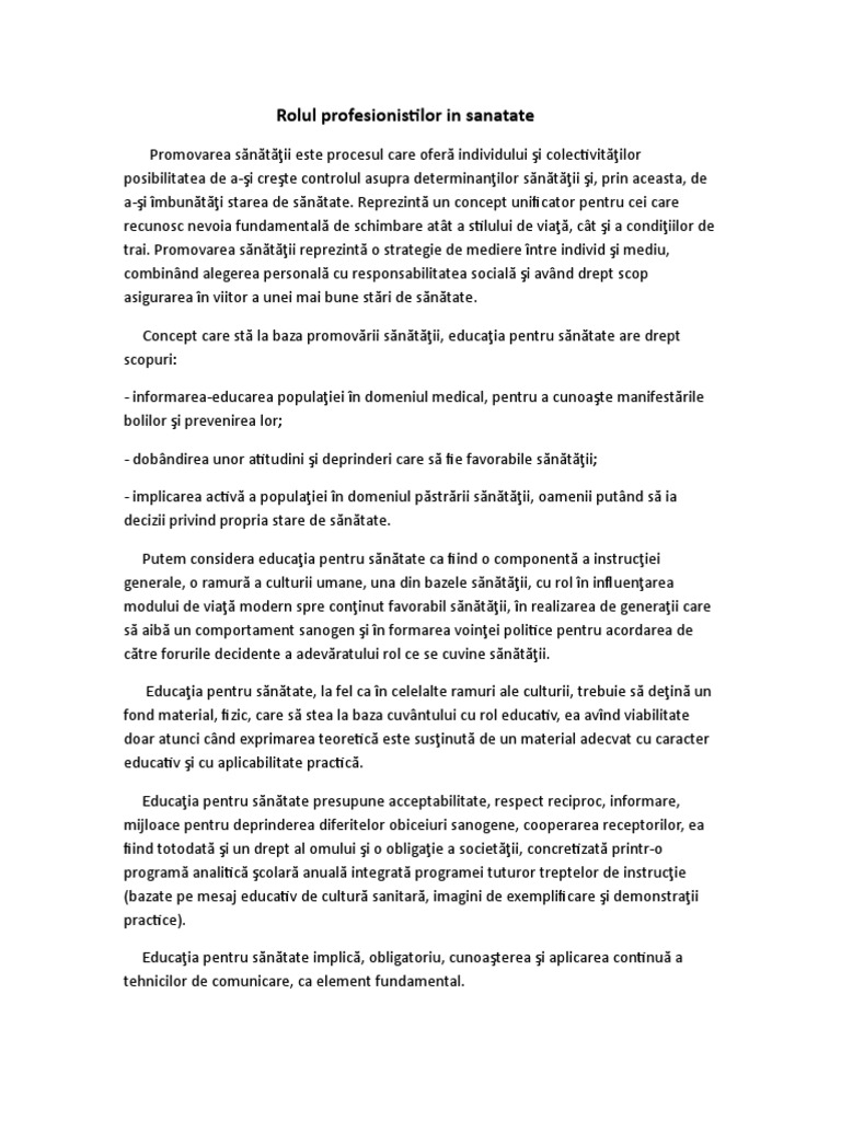 Asigurarea participrii angajailor la procesul de mbuntire a organizrii muncii implicarea activ i consultarea angajailor n vederea mbuntirii mediului lor de. Prevenirea imbolnavirilor promovarea sanatatii si educatie pentru sanatate manual bucuresti public h press 2006 ce este educatia pentru sanatate. Oamenii trebuie informati cu privire la sanatate si modul lor de viata avand ca obiectiv prevenirea imbolnavirilor inainte ca procesele de deteriorare a sanatatii sa inceapa. Constiinta starii de sanatate.