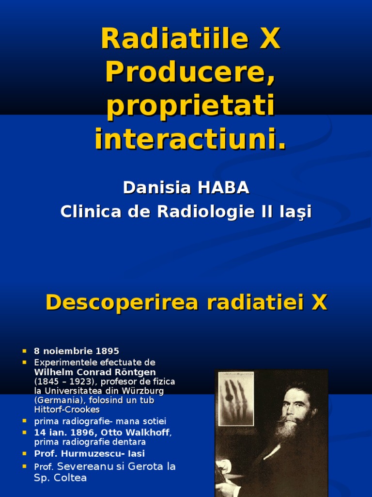 Singurul lucru pe care nu l înţeleg este de ce nu a fost inclusă în această prezentare şi cea anterioară cu radiaţia x caracteristică pentru a avea o singură prezentare a temei. Razele x se pot obtine în tuburi electronice vidate în. Rezultatul acestui proces de fotografiere ainteriorului unui corp opac poartă numele de radiografie. Obs radiatiile y in general sunt periculoase pentru om protectia împotriva lor se realizeaza foarte greu ele fiind foarte penetrante deseori pentru a absorbi radiatiile x sunt necesarii pereti de plumb.