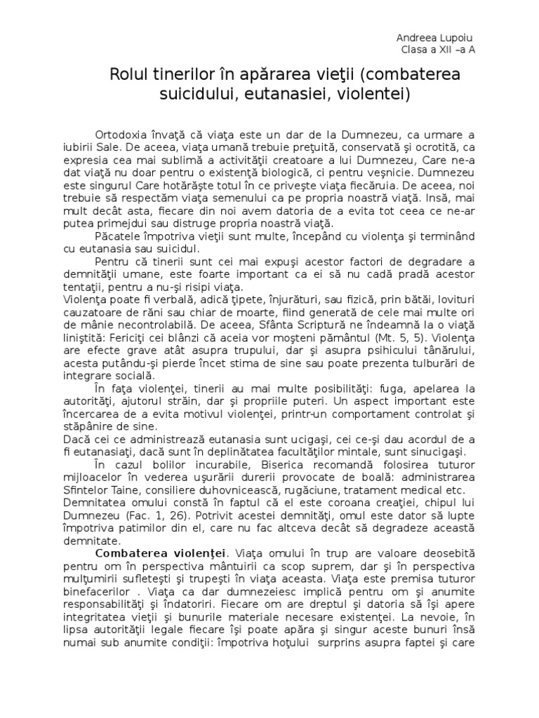 Rolul tinerilor n aprarea vieii combaterea suicidului eutanasiei violentei ortodoxia nva c viaa este un dar de la dumnezeu ca urmare a iubirii sale. Review uri 0 0 stele adăugaţi un review. Postul si rolul lui in viata credinciosilor. Rolul tinerilor în apărarea vieţii lectie clasa a xii a.